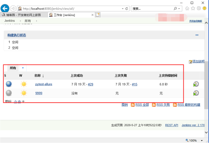 4、查看Jenkins的新建任务,没有看到“北京-宏哥”,说明删除成功了,如下图所示: