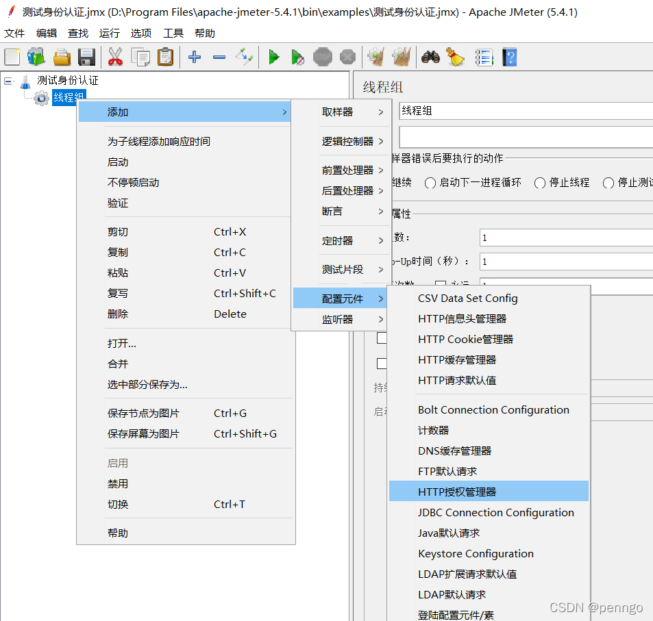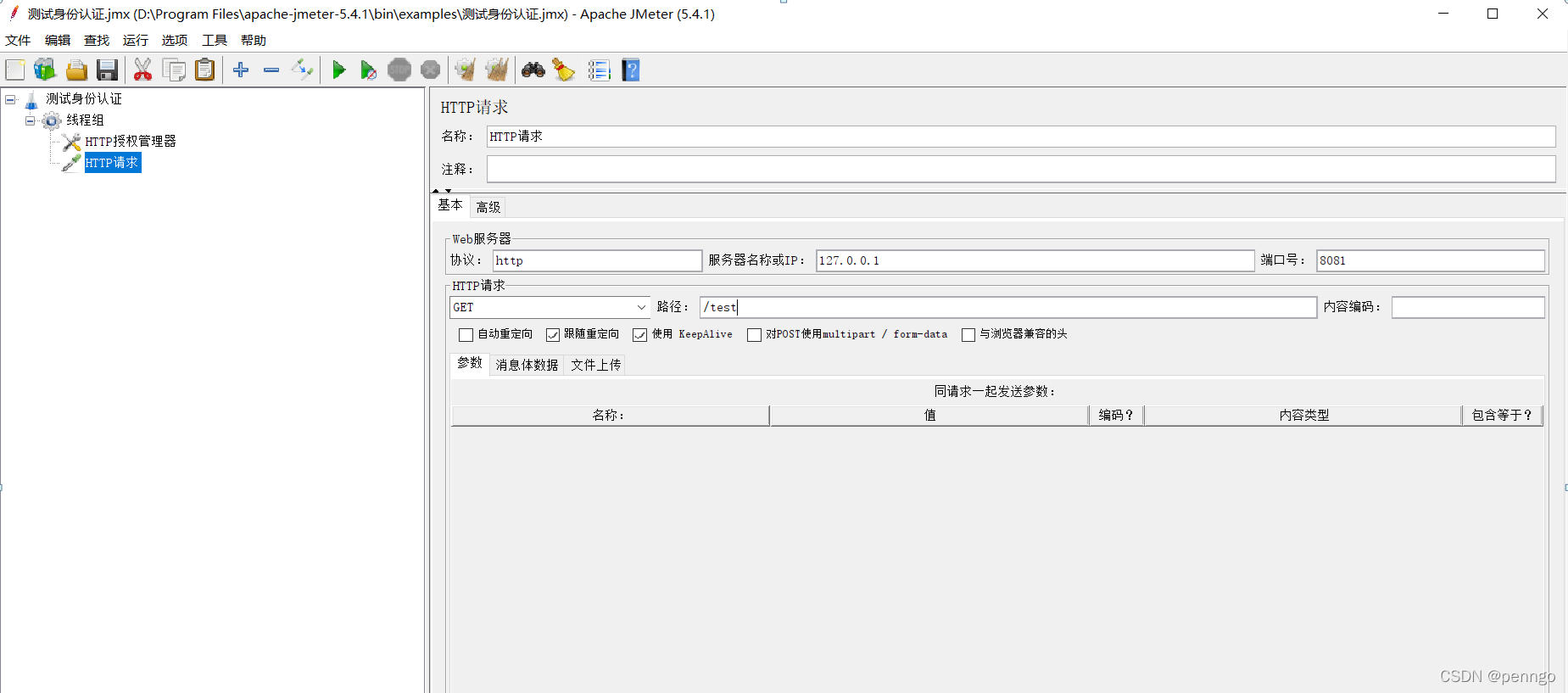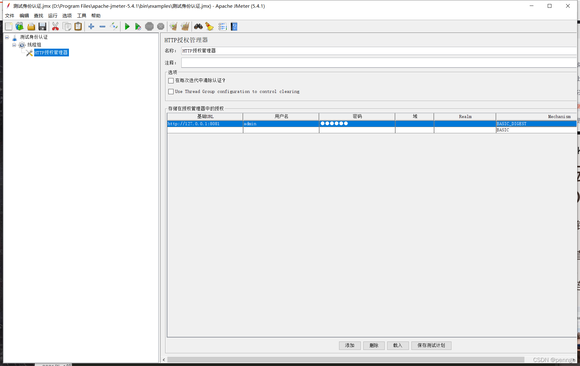 接口地址:http://username:password@host:port/path,username:password是nginx设置在用户名和密码。 如果直接通过http请求压测地址:http://username:password@host:port/path,只会返回响应码 401(未经授权)。一般返回401,错误的原因有两种可能:一是账户密码不对,二是Http请求格式或者JMeter的相关设置不正确。 这种问题可以使用配置元件(HTTP授权管理器)来解决