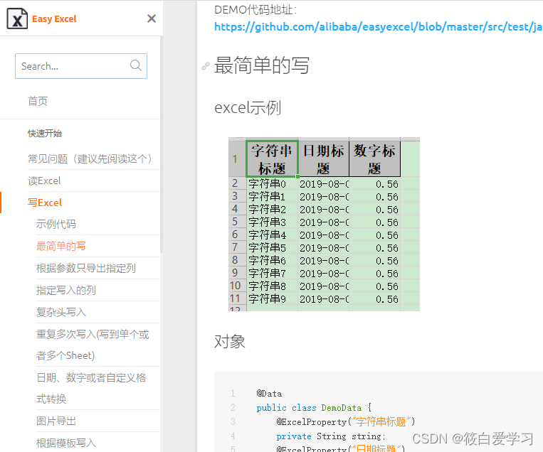 AlibabaEasyExcel 官网文档 https://alibaba-easyexcel.github.io/quickstart/write.html