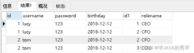 多对多查询的需求:查询用户同时查询出该用户的所有角色