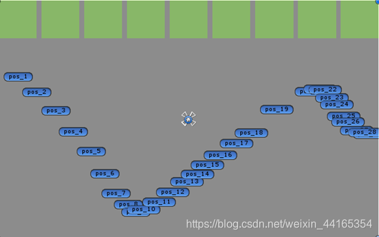 像这样,类似波浪型的轨迹,可以用一个Vector列表记录下每个点的位置和顺序,然后根据每个格子所在的位置,先由小到大循环判断在哪个区间,例如格子3在pos_5和pos_6中间,所以第三个格子的区间就是5,然后通过pos_5和pos_6两个点相减,得到一个从pos_5指向pos_6的向量vector,通过vector3.distance函数得到pos_5和pos_6两个点的横向距离distanceX1,然后再次通过vector3.distance函数得到pos_5与格子3得横向距离distanceX2,那么,格子3的位置 = pos_5的位置 + distanceX2 / distanceX1 * vector,得到位置后再把位置设置回去就可以了 ?