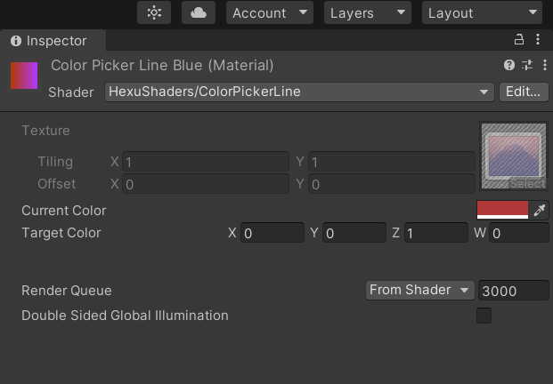 组件共使用了3个自定义Shader,对应了拾色器的不同组成部分,分别是: