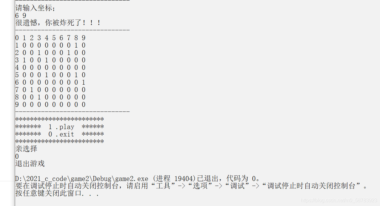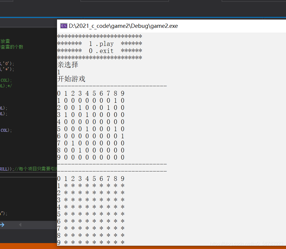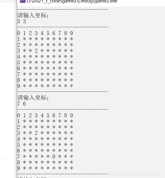 我们通过输入的坐标在mine这个数组中确定该坐标周围的雷的数量,并将雷的数量放到show这个数组所对应在mine数组中的位置