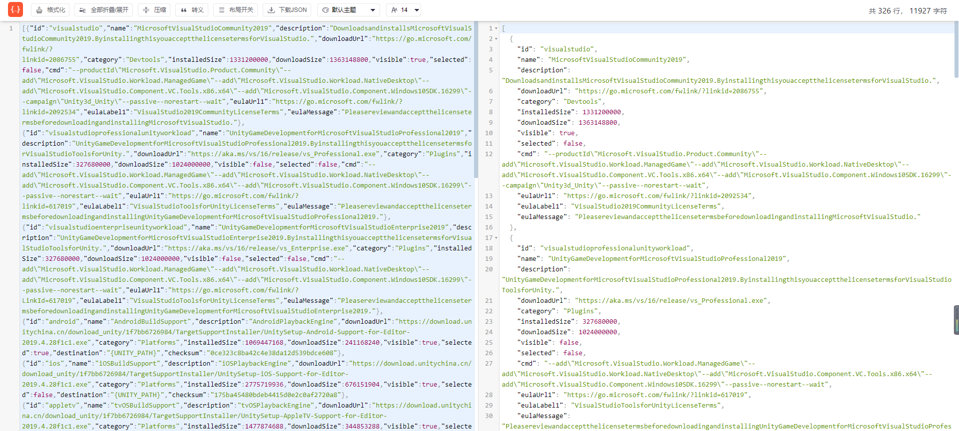这个模块文件就在对应unity版本下的Editor同级目录 下  通过使用Json工具格式化查看里面的内容。 我这里用的是CSDN插件中的json工具。