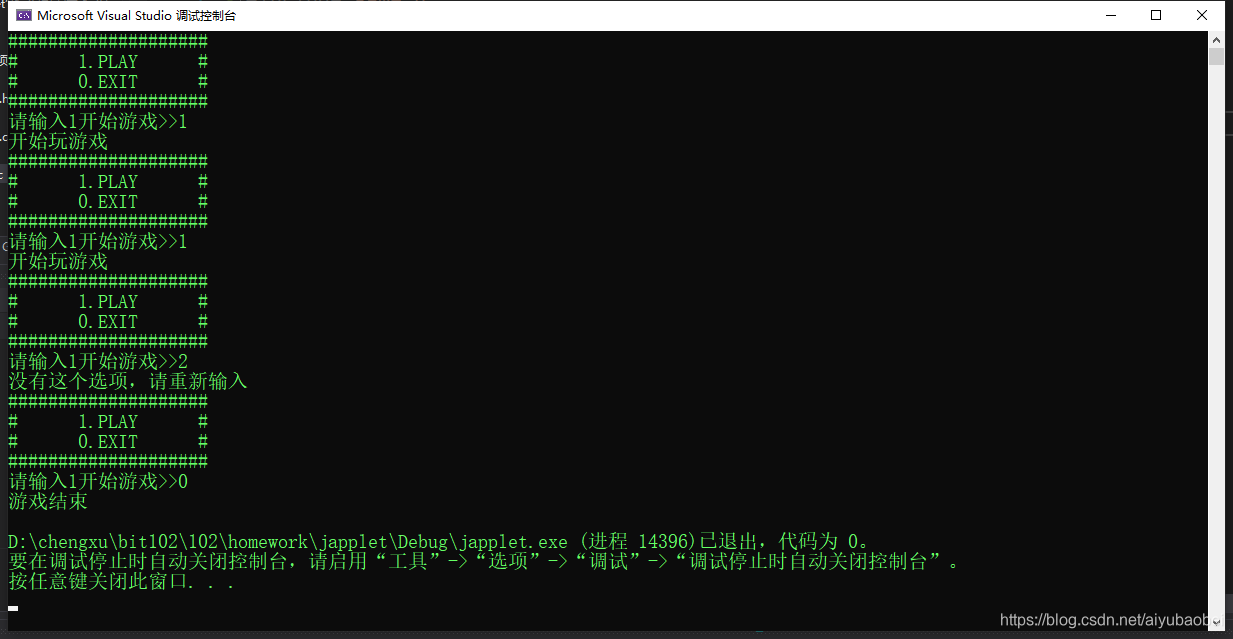 游戏开始我们得让玩家自己选择是玩游戏还是退出,所以我们得打印一个游戏头,让玩家知道有哪些选项以及怎么进入那些选项代码如下: