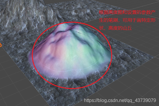 注意:在已经有地形的区域使用Stamp Height画笔,会将画笔覆盖区域的每一个像素都进行当前高度与标记高度的比较,从而确定每一个像素最终高度,而不是将整体纹理的最大高度设置为地形纹理的最大高度,例如:选择最大高度是指在标记高度和当前高度间选择较大的值