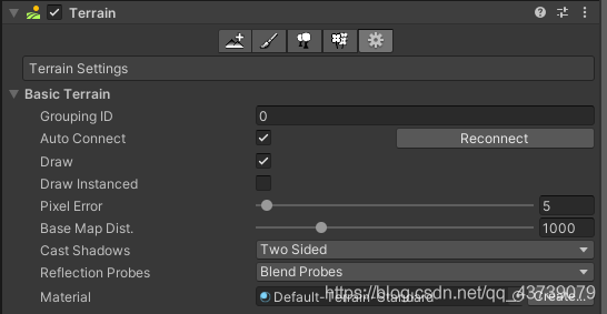 Unity在生成的地形区块的Terrain Settings中默认勾选Auto Connect。启用Auto Connect后地形系统会自动管理相邻地形区块之间的连接,并且区块会自动连接到具有相同Grouping ID的所有邻居。