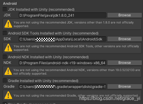 2、所以按照Unity的android版本打包就非常的麻烦。所以Unity依赖的android SDK JDK我这就不赘述了,很多博客都有在写这块怎么安装。