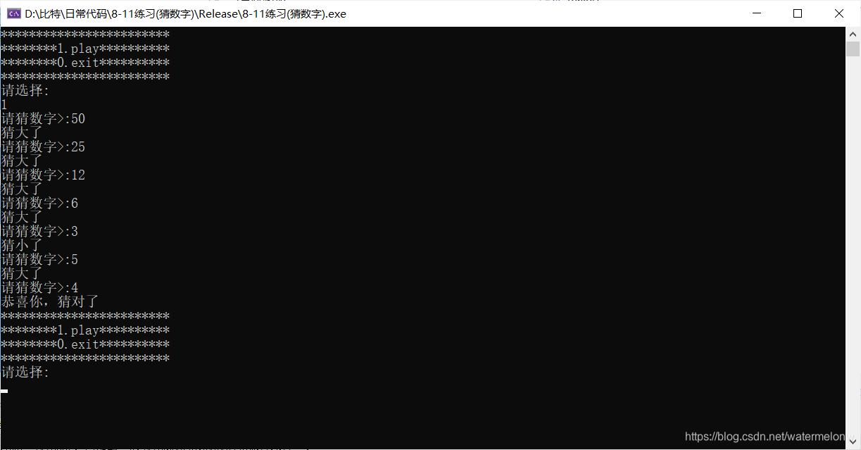 对于博主这种非皇来说,肯定得很多次才可以猜中,此时不免就得用一个循环体,来一遍遍进入猜数字。不仅如此,我们还得每次提示一下猜大了猜小了这样才可以方便玩家不断逼近准确值: