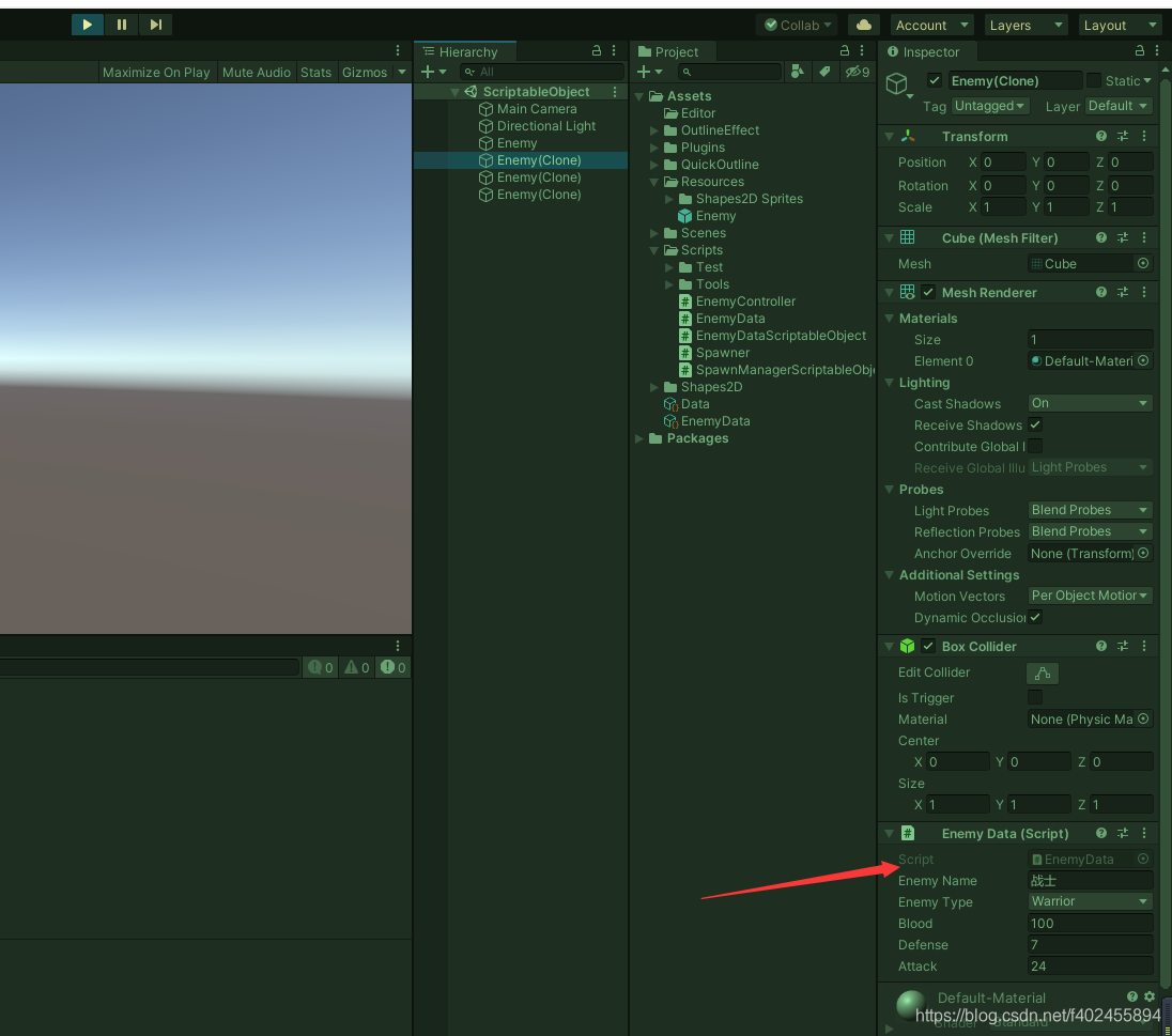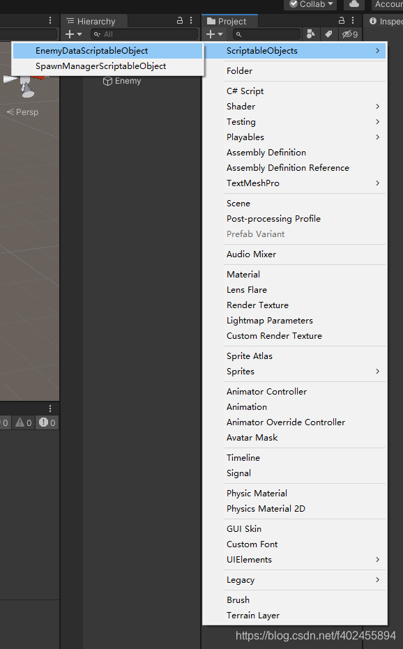 使用上述在?Assets?文件夹中创建的脚本,您可以通过导航到?Assets > Create > ScriptableObjects > EnemyDataScriptableObject?来创建 ScriptableObject 的实例。