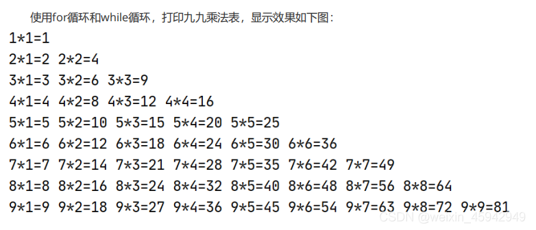 打印九九乘法表?