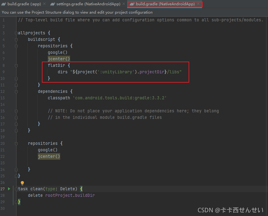 - 在settings.gradle中添加对应代码