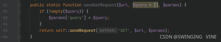 ?sendGetRequest()方法中$query为url带参? $params为Body带参