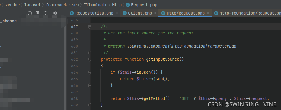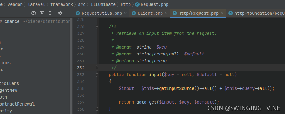 首先看到vendor/laravel/framework/src/Illuminate/Http/Request.php的input()方法