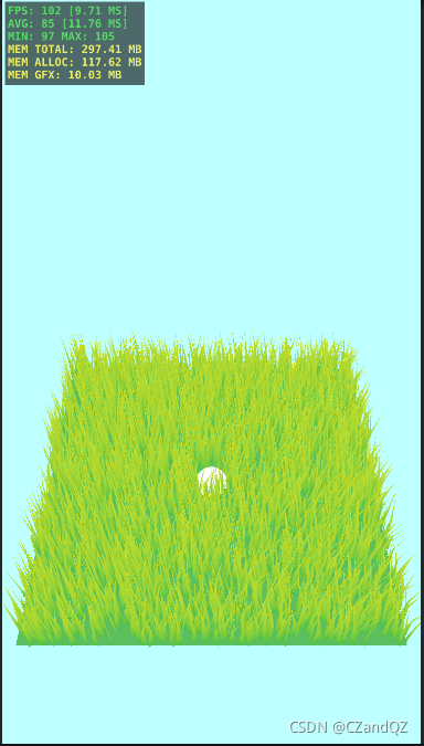 因为截图的缘故 看着草没动 其实草会摆动的。这个就是我们最终的效果了,首先这个效果模型我们是没有的所以草的Mesh我们得重新定义