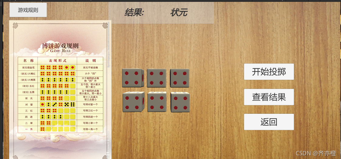 上图为游戏界面,游戏规则可以使用SetActive()脚本来实现规则的折叠