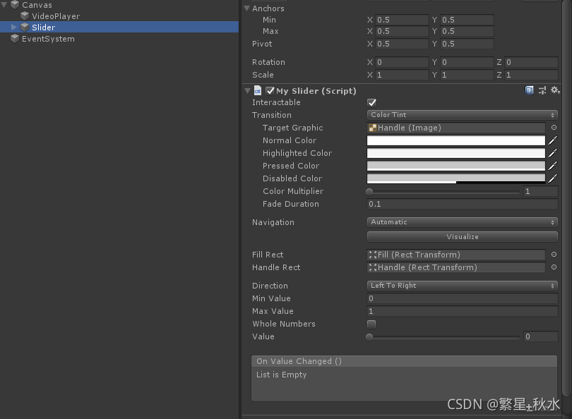 public MySlider videoTimeSlider; // 视频的时间 Slider