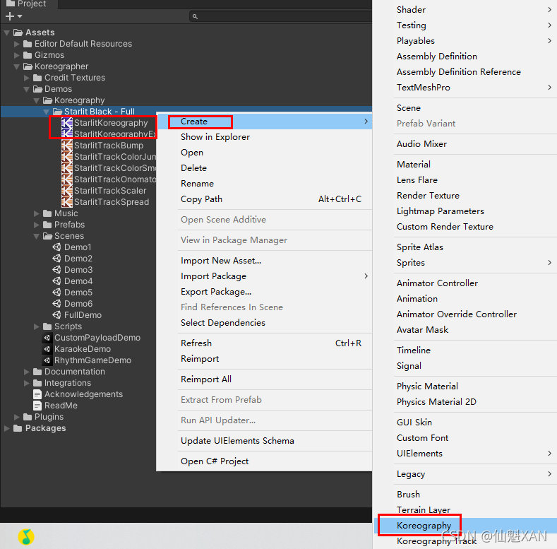 2)在工程中新建一个Koreography,用来添加音频和相关数据、节拍事件设置