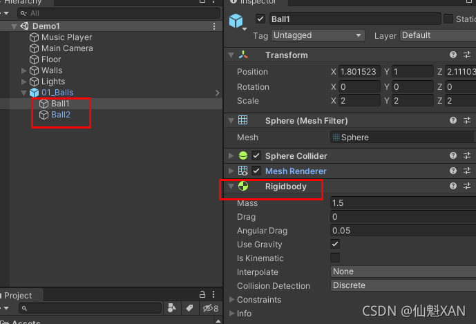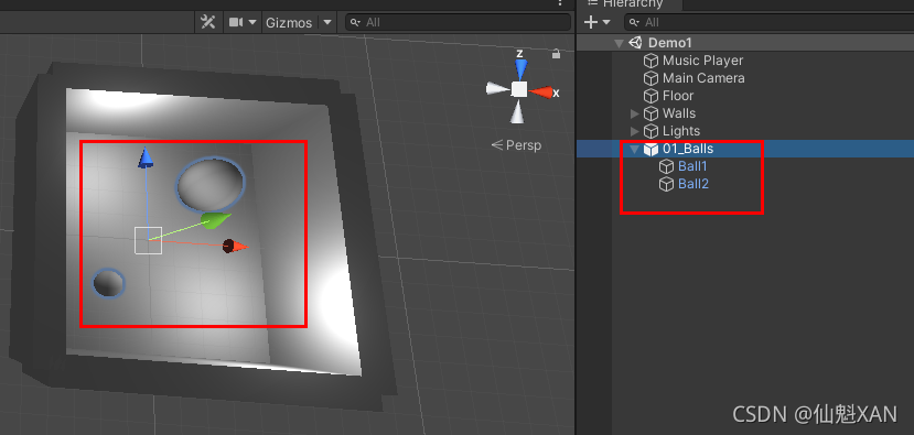 1)场景使用之前球和正方体的结合场景,新建GameObject物体,来监控颜色变化挂载物体
