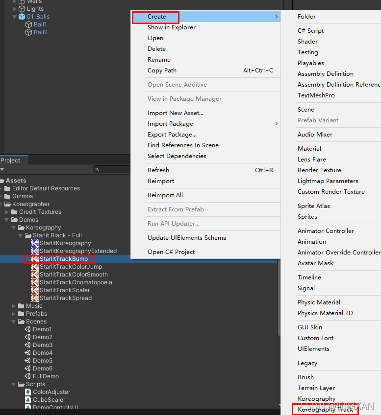 ?2)同理新建 Koreohgraphy Track,并设置到? Koreohgraphy 上