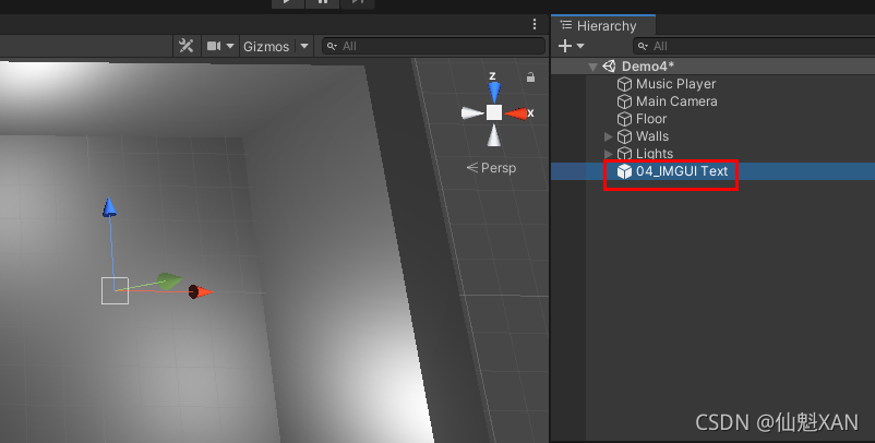 1)场景新建一个GameObject(这里用的 GUI,你也可以使用 UGUI)