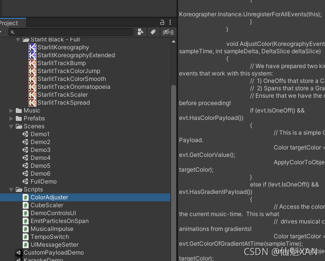Unity Koreographer 之二 音乐制作插件中 Demo 的实现过程说明演示