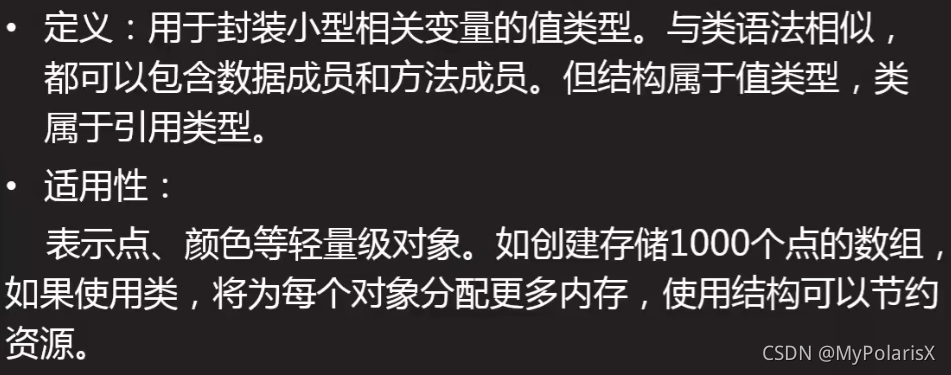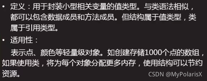 - 结构体不可以包含无参构造函数,因为结构体自带无参数构造函数。?
