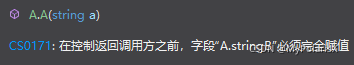- 根据上面的一个小问题,我们知道,结构中需要使用自动参数,或者说,我们必须在构造函数中,先为所有字段赋值。而我们的结构体一开就给予了一个构造方法,我们通常继承它,来编写自己的相关构造方法,便可以解决上面的问题;或者将变量改为自动变量。总的来说就是构造函数内,必须对每一个变量实现赋值操作。不过此问题,似乎在net5.0中已经修正。