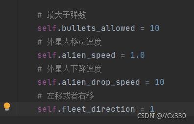 在setting.py中加入外星人移动速度的设置,并在alien.py中加入