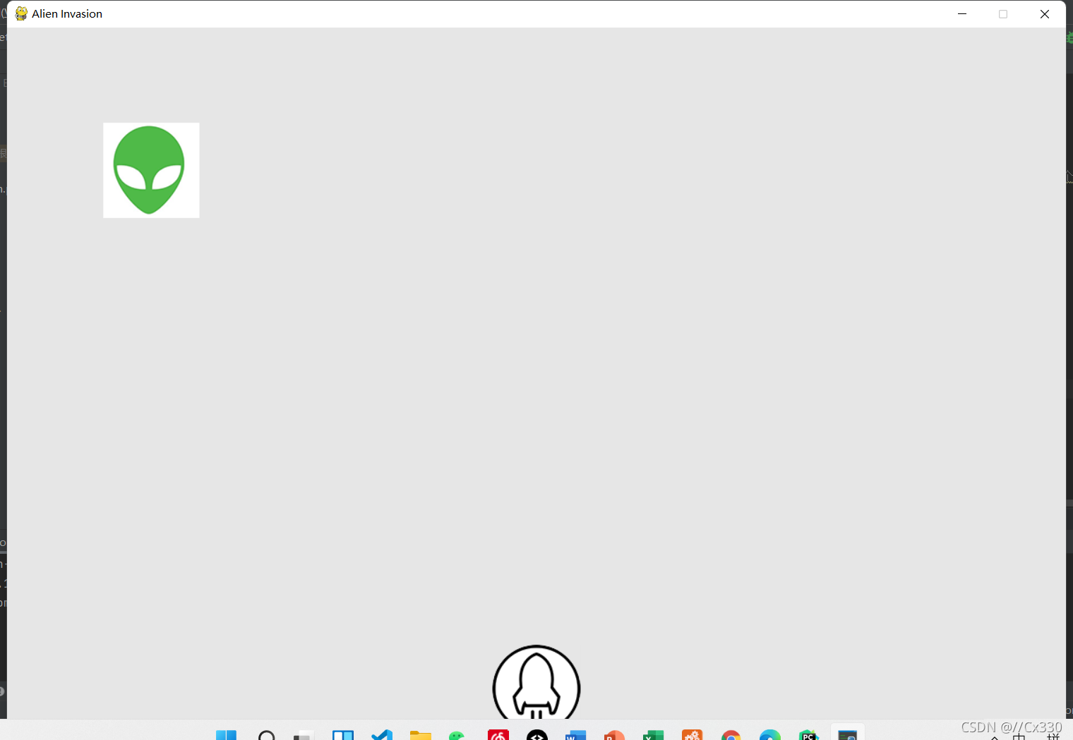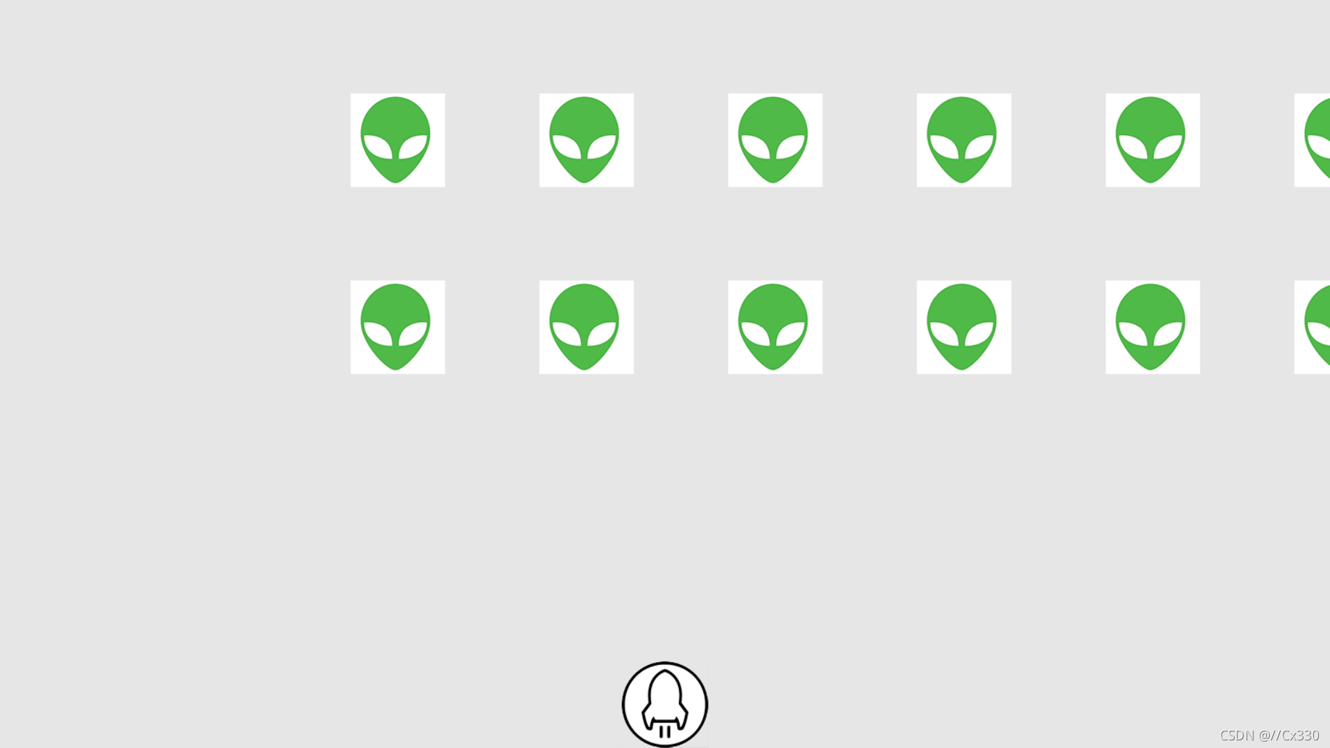 到这一步,如果没有射杀外星人,则会一直往下走,最后消失在底部。发出子弹击中外星人时,外星人和子弹都会消失。