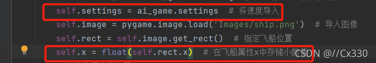 self.image = pygame.image.load('Images/ship.bmp') # 导入图像