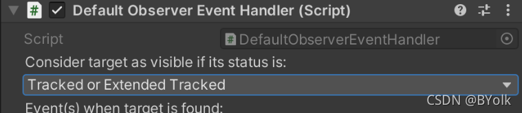 - Unity中的大多数ObserverBehavior,包括图像目标、模型目标、区域目标和锚点,都附带了DefaultObserverEventHandler,用于处理即时状态更新。
