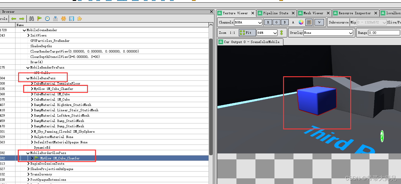最近通过一些UE4的图形效果定制来学习UE4的图形渲染, 在自定义的MeshPass这个专题想通过移动端的边缘发光来阐述下定制流程. 在知乎大佬某篇文章 Unreal添加自定义Pass?恰好有相应的实现,但是我读过他的实现代码,发现部分代码耦合度有点高,过多把代码放到FMobileBasePassMeshProcessor上,所以我做出了部分改进.