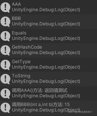 Debug.Log("调用AAA()方法: "+ mInfo[0].Invoke(obj, new object[0]));