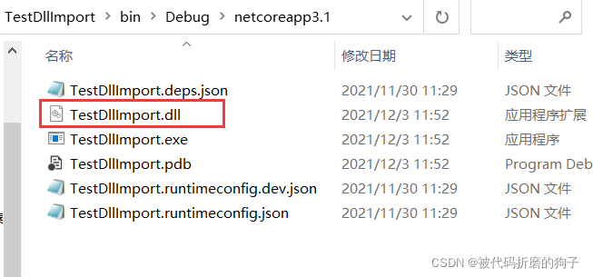 dll路径:C#创建项目名称\bin\Debug\netcoreapp3.1文件夹下