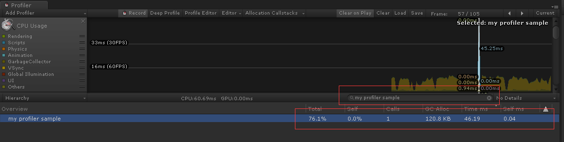 可以通过profiler类在脚本中控制profilier,使用UnityEngine.profiling.profiler类的BeginSample和EndSampler方法来访问,示例如下