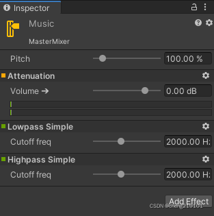 当Volume的值设置到20时,背景音乐会特别嘈杂,特别大的噪音。恶心到完全没法听,真想推倒重新用变量控制,放弃AudioMixer。解决方案: