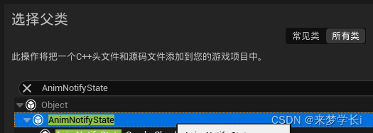 1.创建AnimNotifyState C++类,命名为AnimNotifyState_ComboCheck