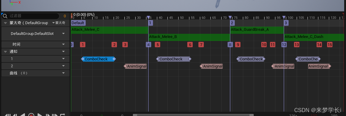 打开UE引擎,打开角色连击动画Montage,在动画通知轨道添加ComboCheck动画通知