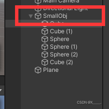 3.新建一个空物体取名为“SmallObj”,然后将需要剔除的小物体放在该SmallObj物体下面,并且指定SmallObj物体的层为“separatesmall”