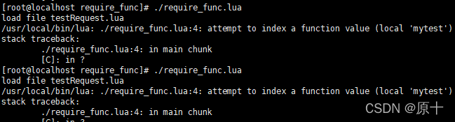 在学习Lua require关键字时,出现了一个错误“/usr/local/bin/lua: ./require_func.lua:4: attempt to index a function value (local 'mytest')”,如: