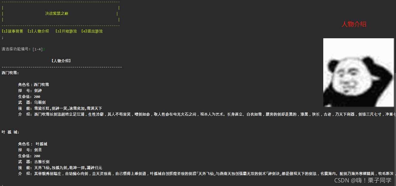 【1】故事背景 ?【2】人物介绍 ? 【3】开始游戏 ?【4】退出游戏