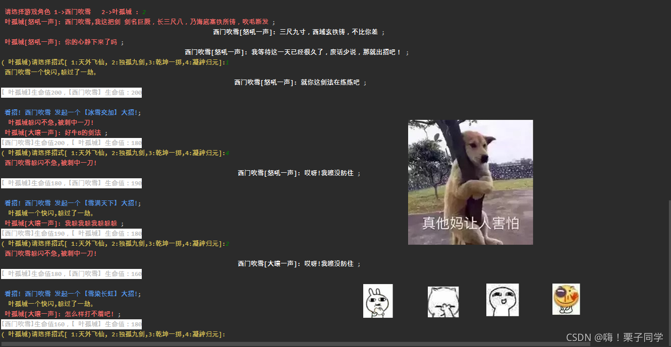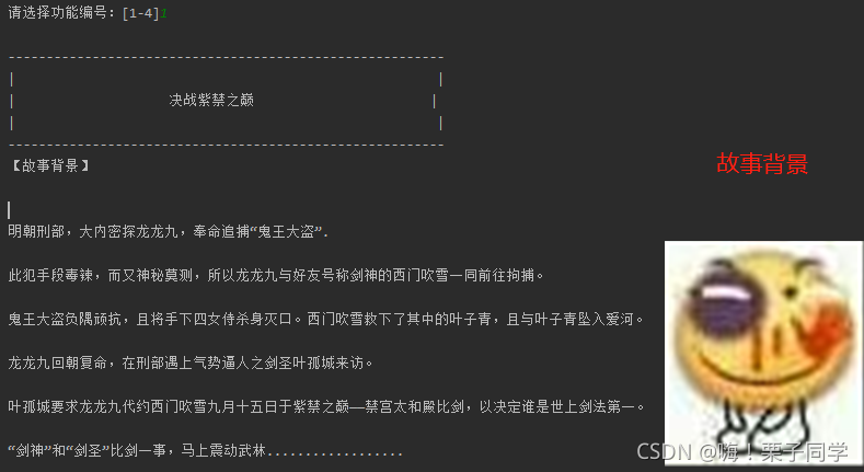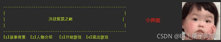 因为实在是写剧情游戏+界面太难了,所以大家将就着学习这个简易版本的吧!23333