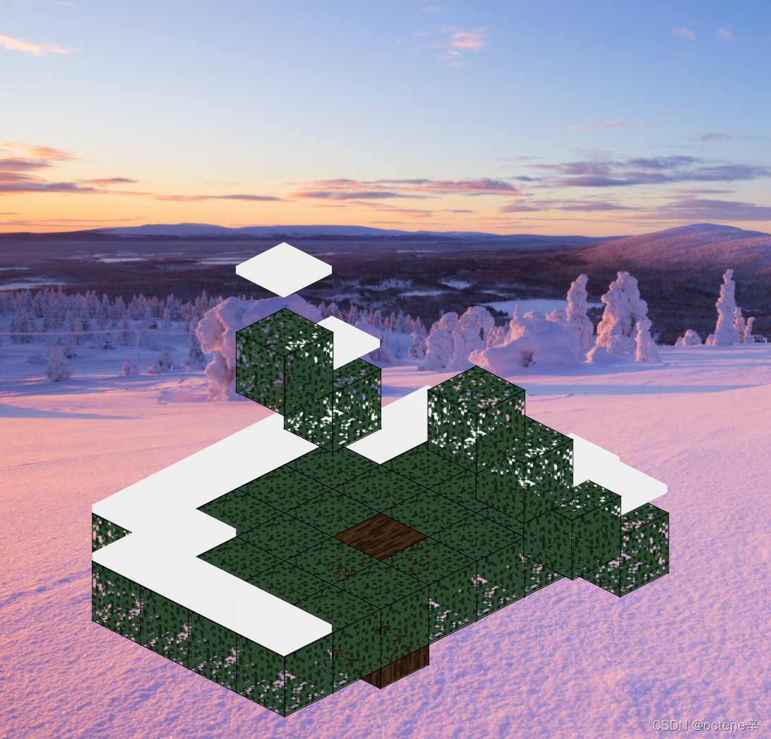 三种方块:完整大小(64*64*64)的leaves和wood,不完整(64*64*8)的snow,最小的(8*8*8)的dec;