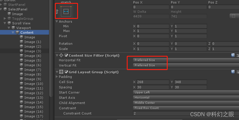 若content锚点为Top,有ContentSizeFitter组件,需将Honizontal Fit改为Preferred Size,使用脚本中方法一计算方式。