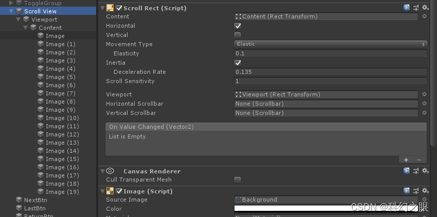 ?若无ContentSizeFitter组件,且content锚点设置为Left时,使用方法一的计算方式,需要设置总页数宽度;使用脚本中方法二的计算方式,需要设置每页宽度。