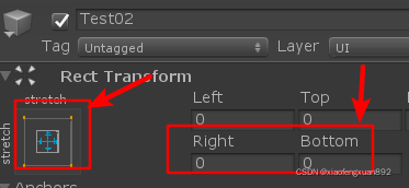 所以当sizeDelta.x <?0 时代表rect的宽度小于原有的矩形宽度,而在UGUI的RectTransform视图中,却是站在该UI对象的角度,超出anchor矩形的使用负数,在anchor以内的则用正数表示。