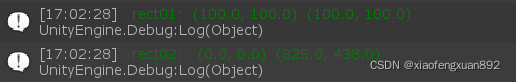 Debug.Log("<color=green> rect02: " + rect02.sizeDelta + " " + rect02.rect.size + " </color>");