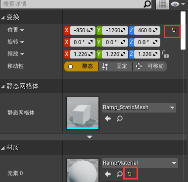 在视口或者世界大纲面板选中的对象,其属性都会出现在细节面板。