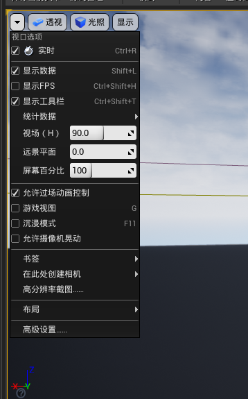 显示数据和显示FPS:同时打开,会在视口中出现实时FPS,以便对场景内容进行调整 -